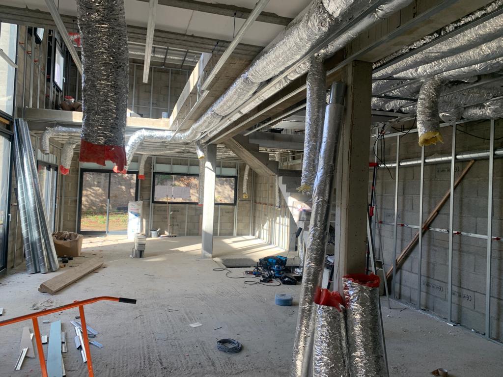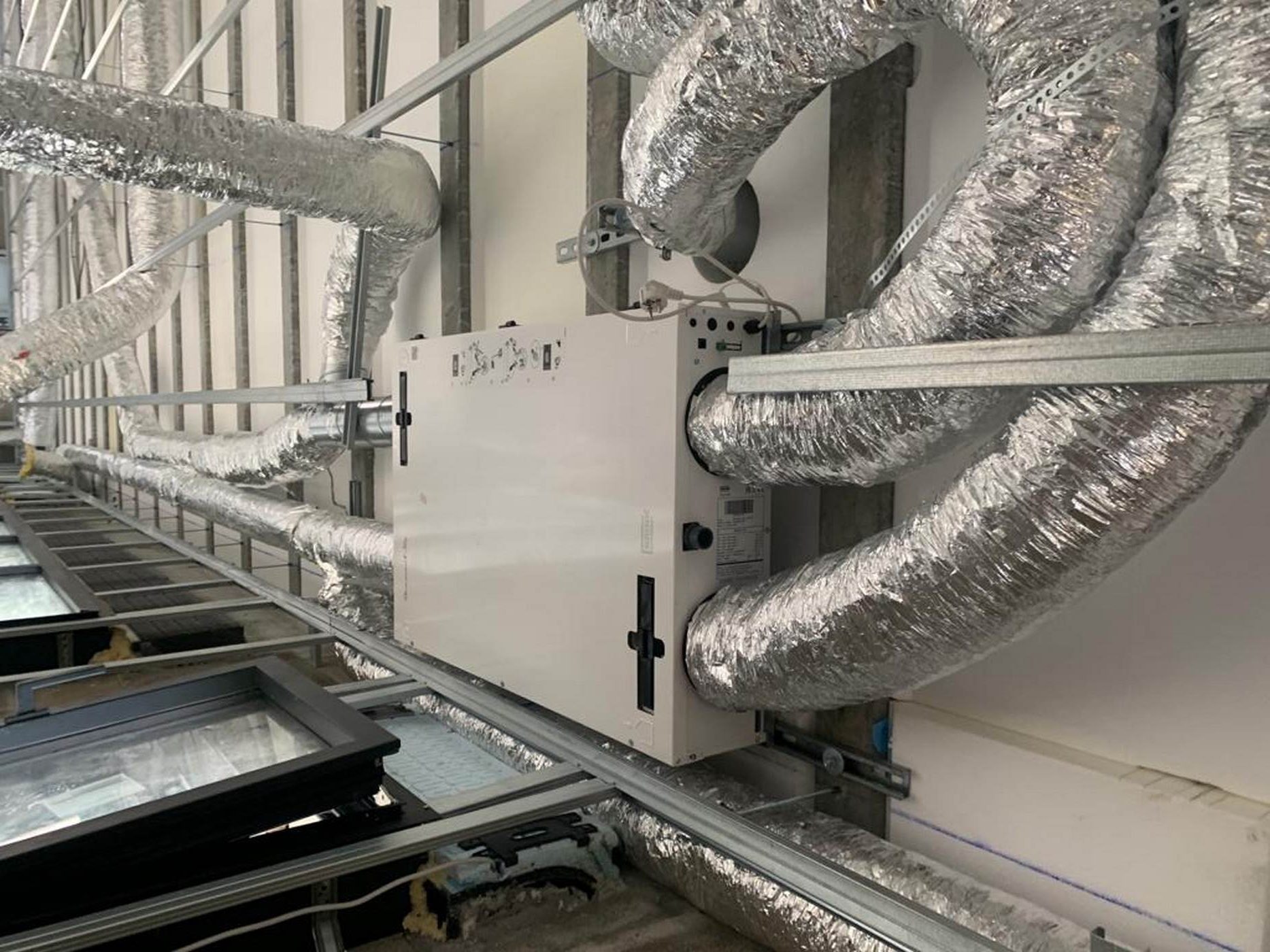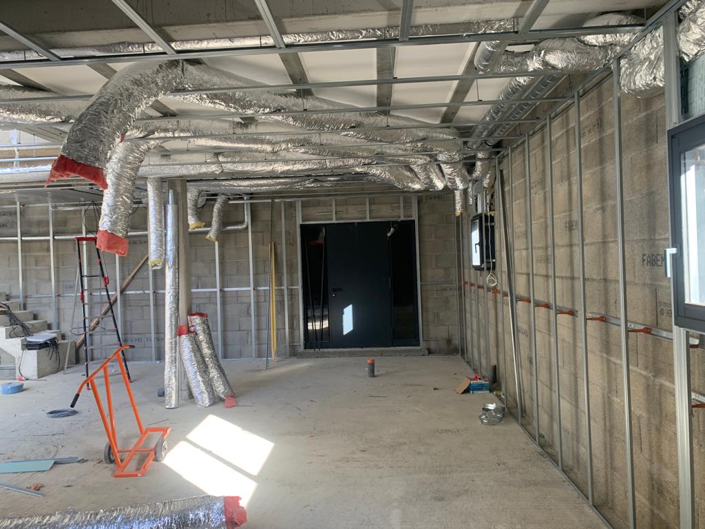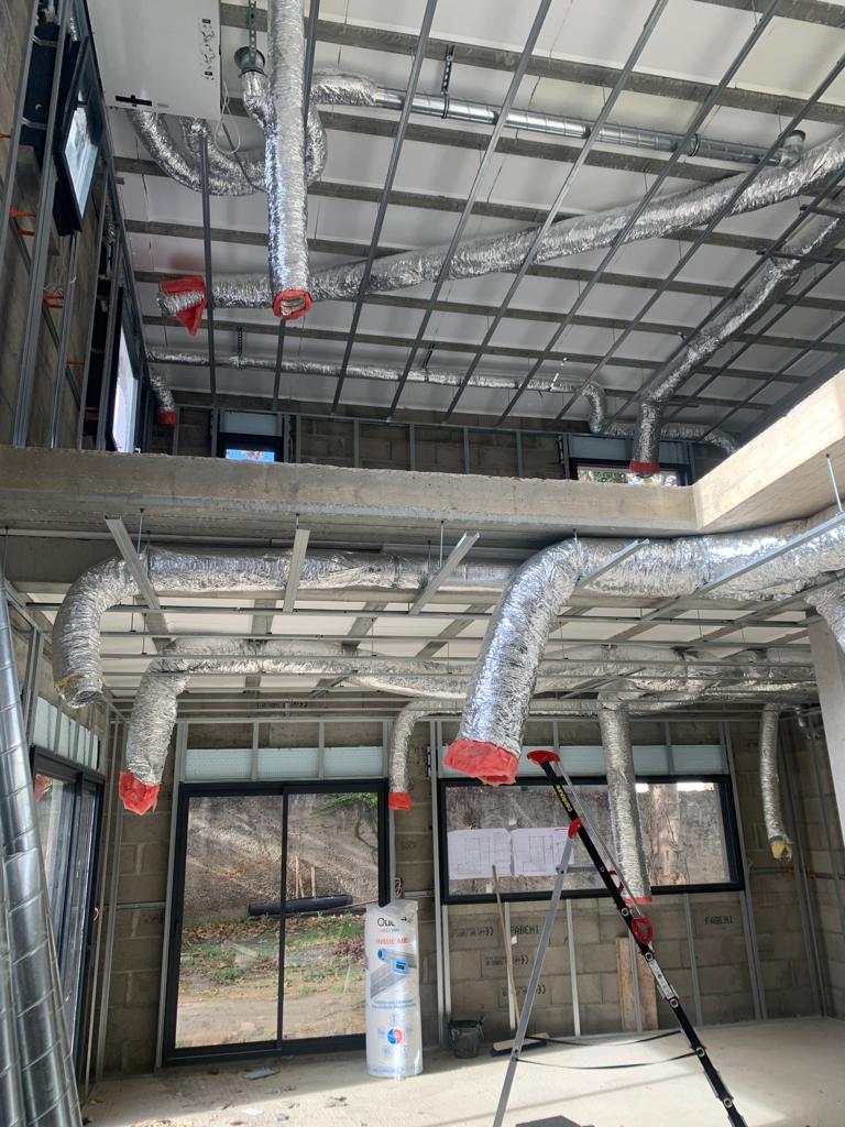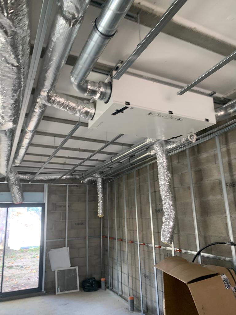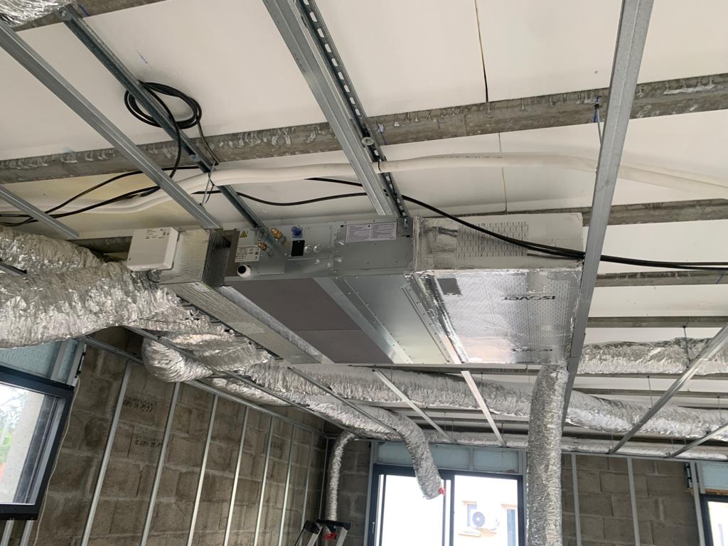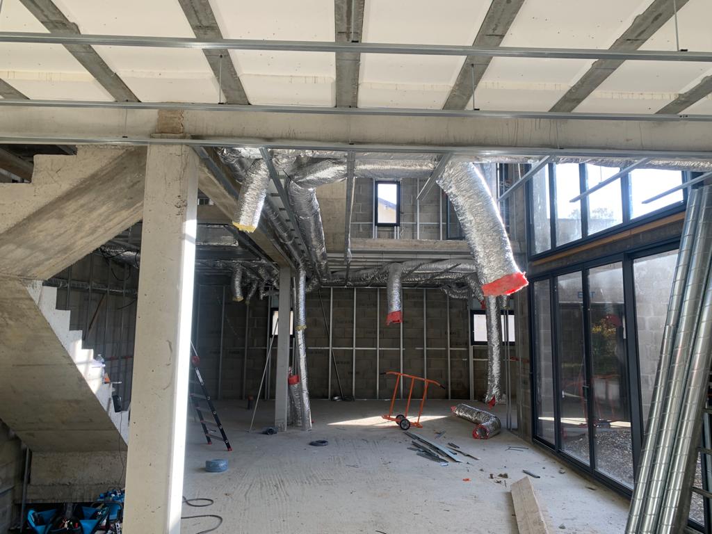 Installation de gaines de ventilation à [ville ???] dans le cadre d’un chantier de construction d’une maison, avec pose d’un système de climatisation Daikin.